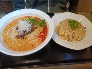 実家の草取りをして庭木の剪定をしたら、もうぐったりで、相方と近所の担々麺屋さんへ行きました。