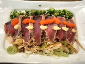 曇天のなか、どうしてもカルディで買いたいものがあり、ついでにモール内で、「初ガツオ」を食べてきました。
