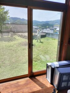 カビ臭い家の中へ風通しをする為に、窓という窓を全て開け放ちます。